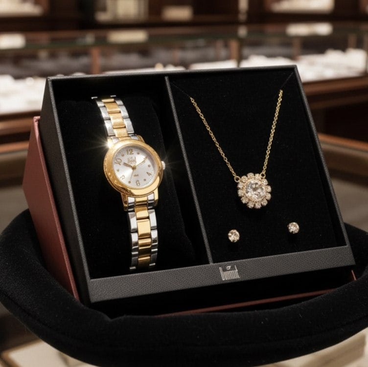 Kit Relógio Dumont Feminino Lady Bicolor – Du2035moq/k4k Bisel Dourado Fundo Prata