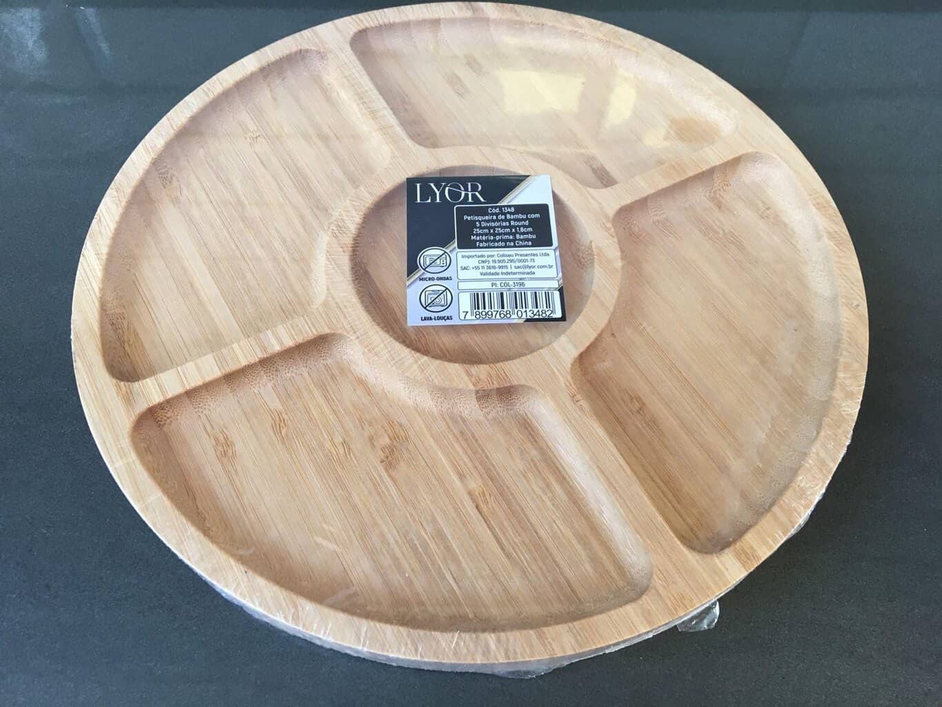 LYOR – Petisqueira de Bambu com 5 Divisórias Round 25cm x 25cm x 1,6cm