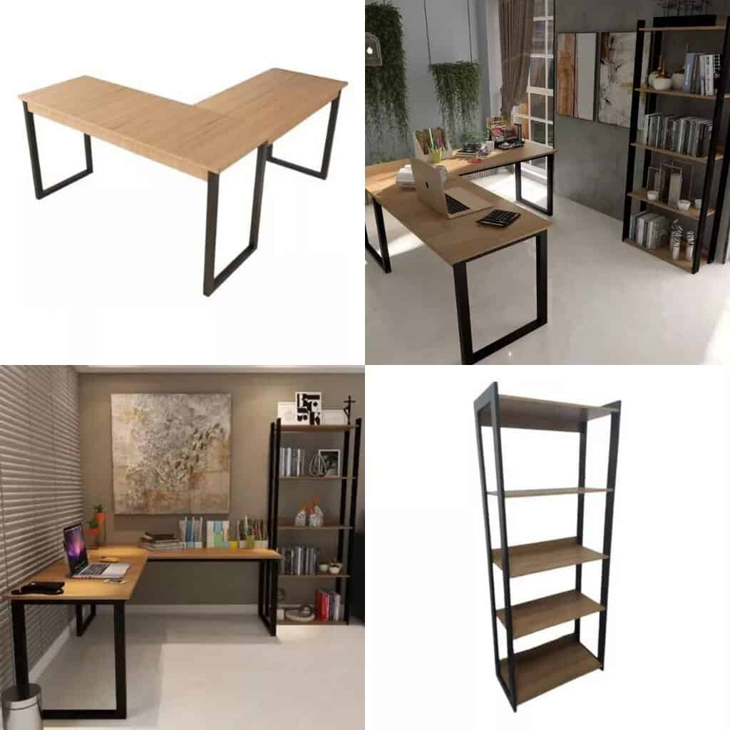 Mesa L E Estante 5 Prateleiras Multiuso Escritorio Conjunto