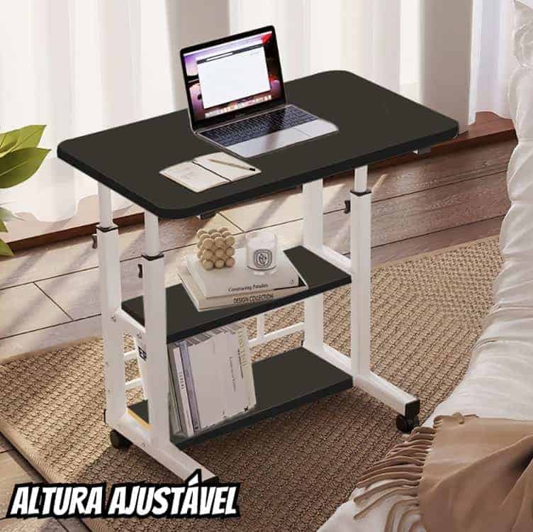 Mesa portátil para sofá e cama, mesa lateral para laptop com altura ajustável (Preto)