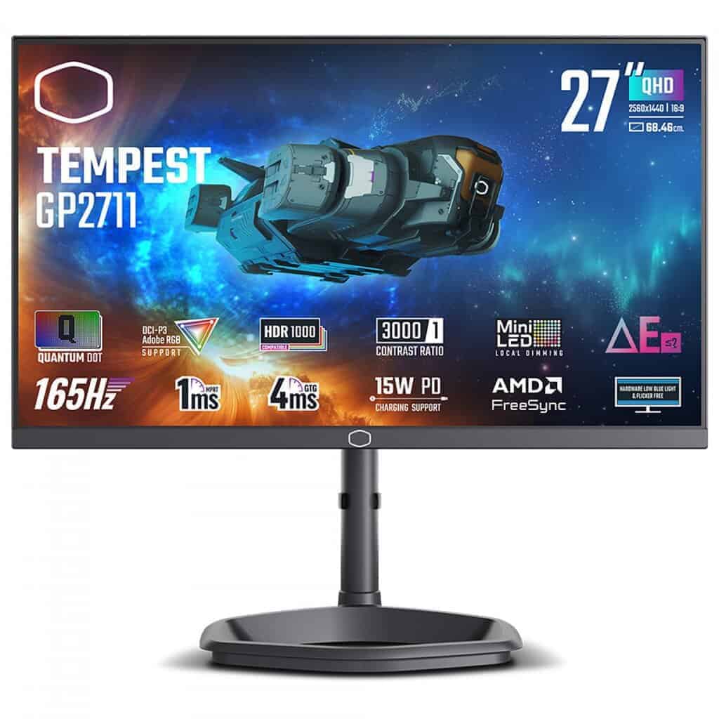 Monitor Gamer Cooler Master 27″, QHD, 165Hz, 1ms, VA, DisplayPort e HDMI, HDR1000, FreeSync, Ajuste de Altura, Som Integrado – GP2711