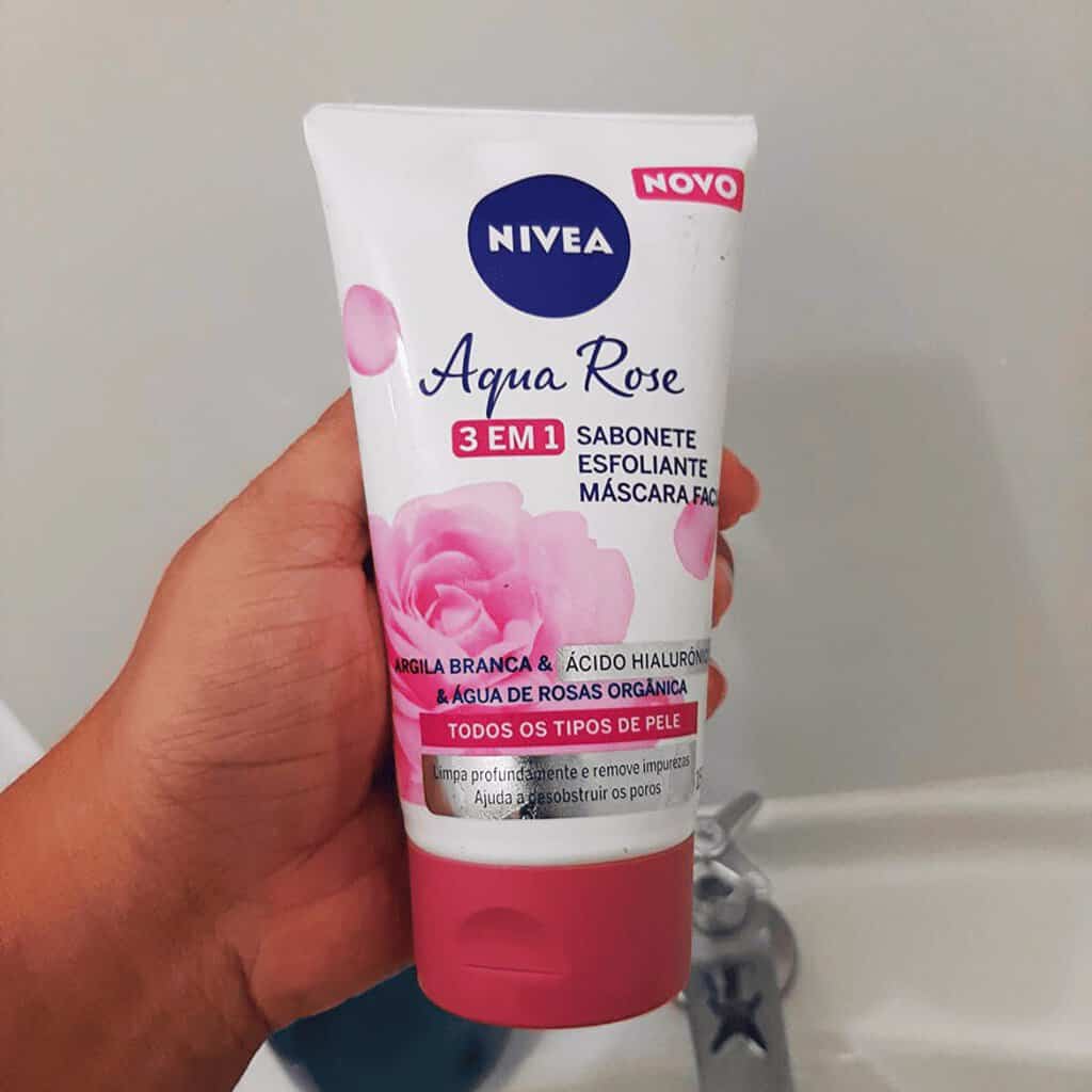 NIVEA Aqua Rose 3 em 1 150ml – Sabonete, Esfoliante e Máscara Facial – Com argila branca, ácido hialurônico e água de rosas orgânica