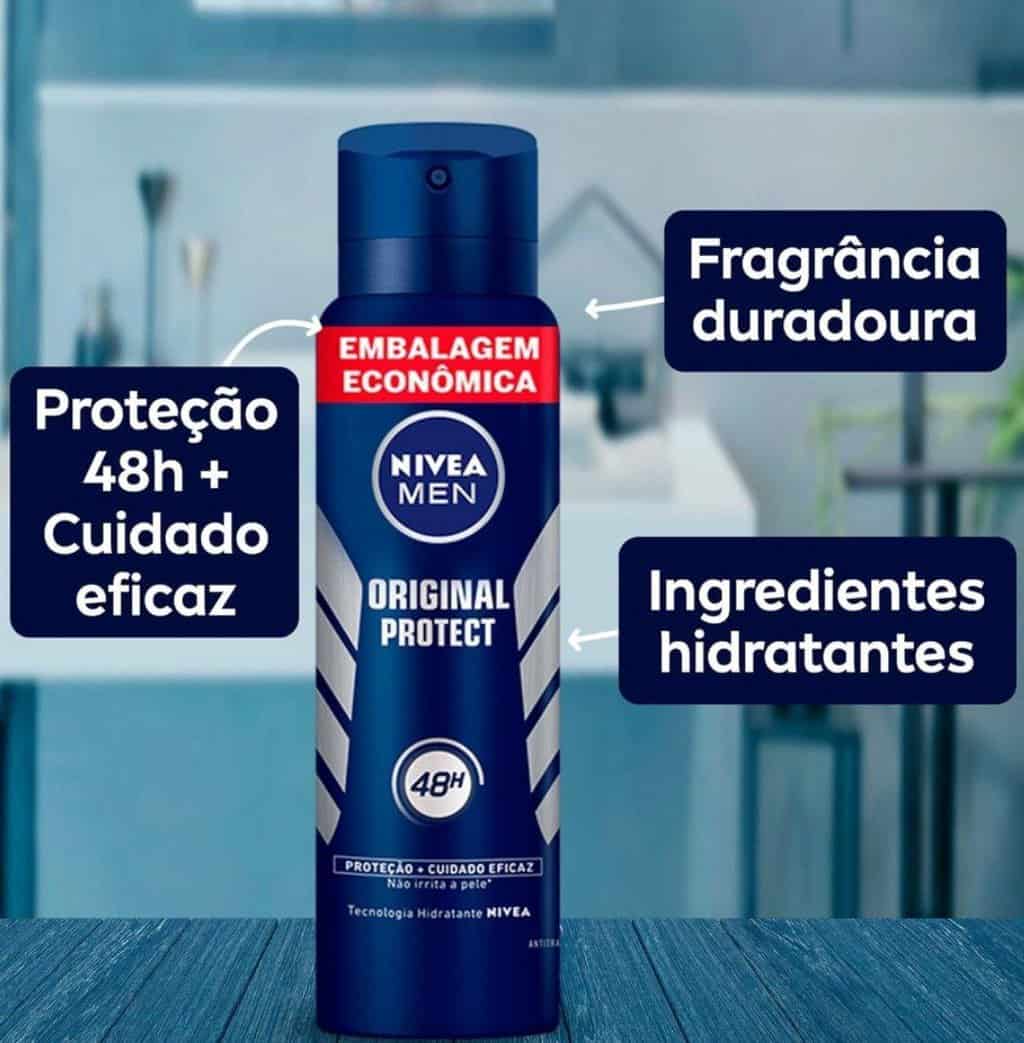 NIVEA MEN Desodorante Antitranspirante Aerossol Original Protect 200ml – Proteção eficaz de 48 horas contra suor e mau odor, desenvolvido especialmente para prevenir irritações na pele