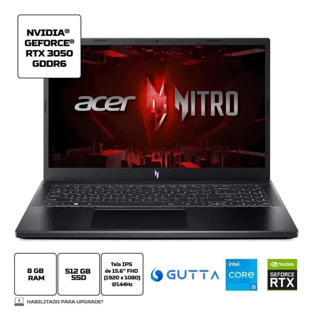 Notebook Acer Nitro V Ci5 15.6 Rtx3050 512gb 8gb Linux+ubook Preto
