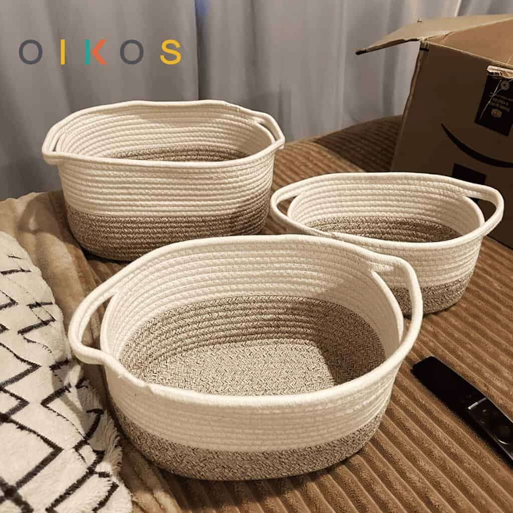 Oikos – Kit Cestos Duo Cordas com Alças 3 Peças