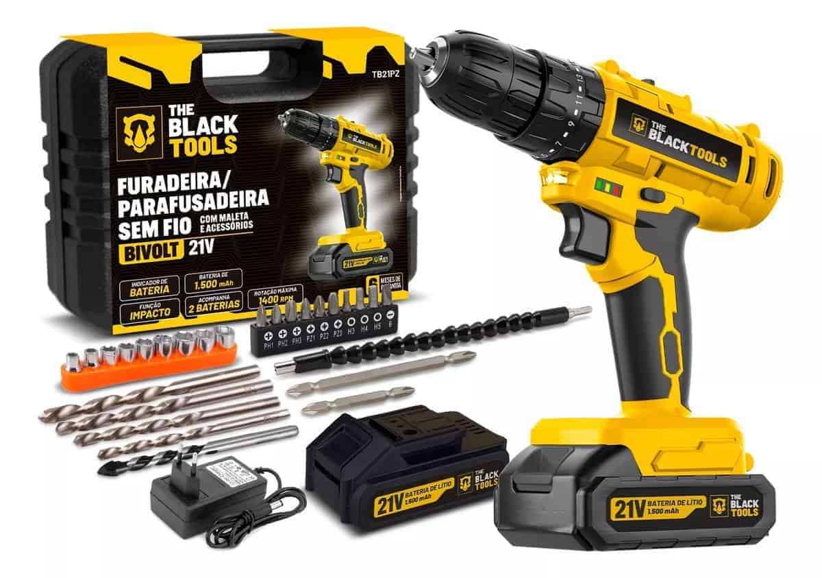 Parafusadeira E Furadeira De Impacto 3/8 The Black Tools Tb21-pz Com 2 Baterias Bivolt E Acessorios