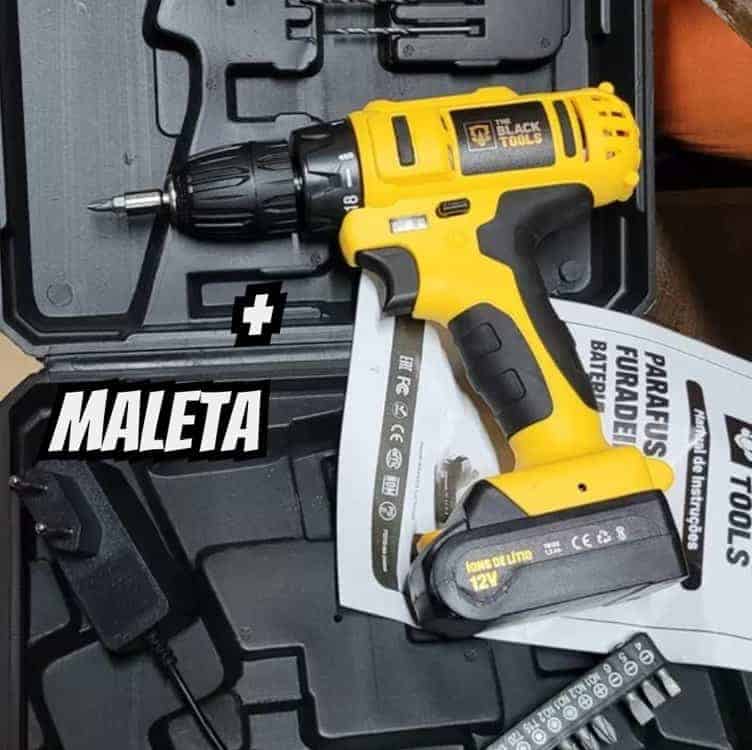 Parafusadeira E Furadeira Sem Fio Bateria 3/8 10mm Com Maleta E Acessorios The Black Tools