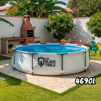 Piscina Estruturada Redonda Circular Aço Pvc Cinza 4690l 76x300cm Fácil De Montar Tbt-002 The Black Tools