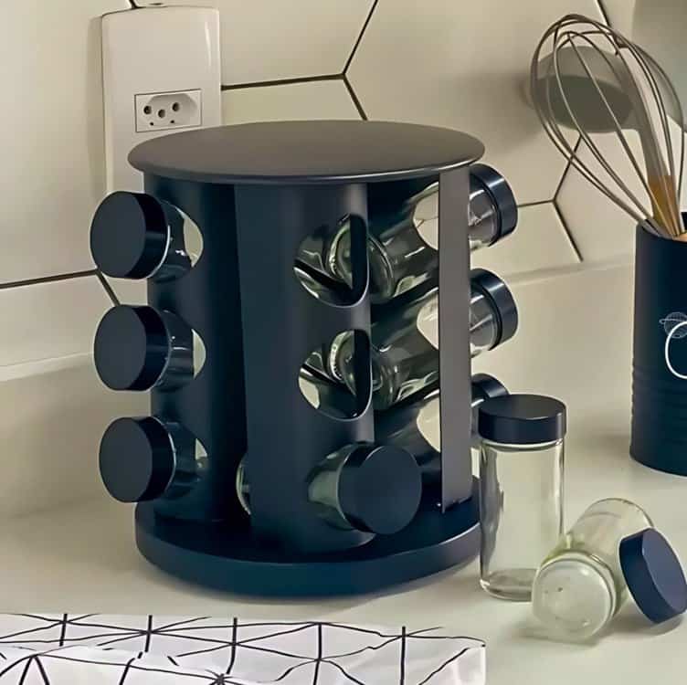 Porta temperos e Condimentos Giratório Com 9 Potes de vidro Preto – Belakaza