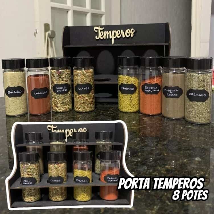 Porta Temperos E Condimentos Luxo 8 Potes Mais Etiquetas