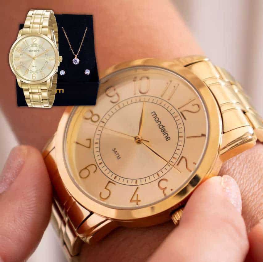 Relógio Feminino Mondaine Original Barato + Colar E Brincos