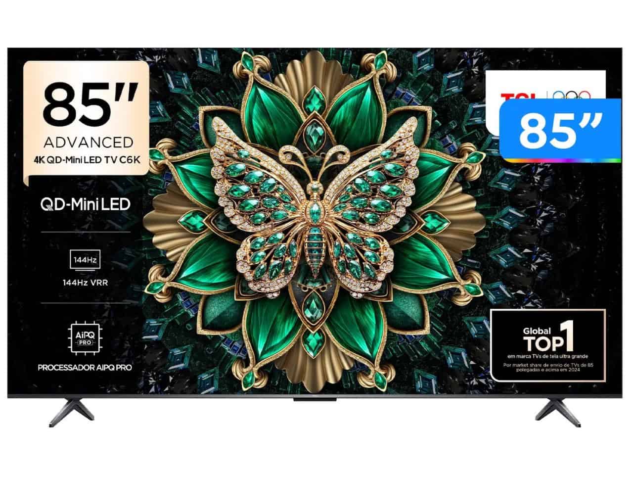 Smart TV 85″ TCL UHD 4K MINILED 85C6K 120Hz Google TV AiPQ Pro Google Assistente 4 HDMI 2 USB