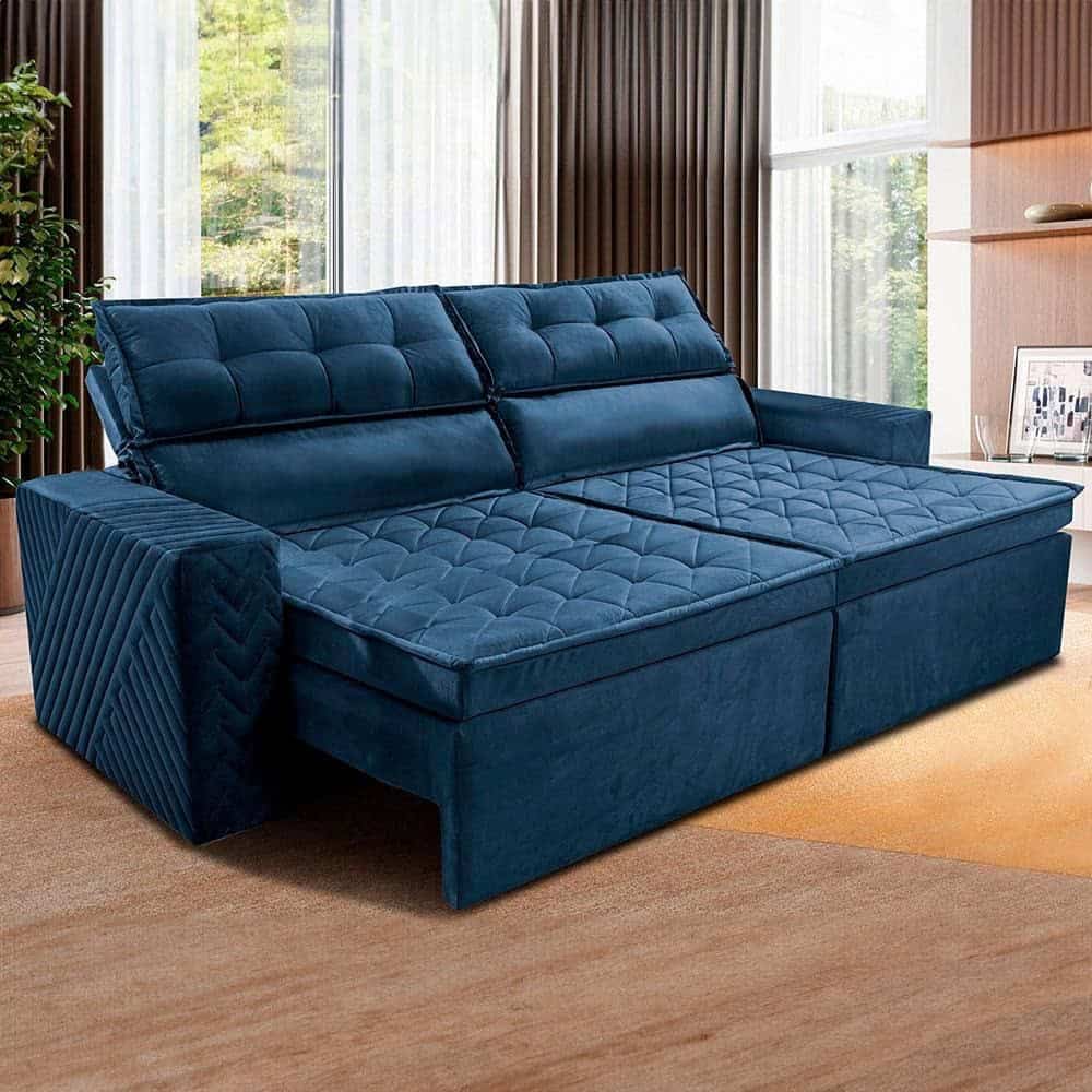 Sofá 3 Lugares Cama inBox Belém Retrátil e Reclinável Revestido em Suede Velusoft – 200cm de Largura – Azul