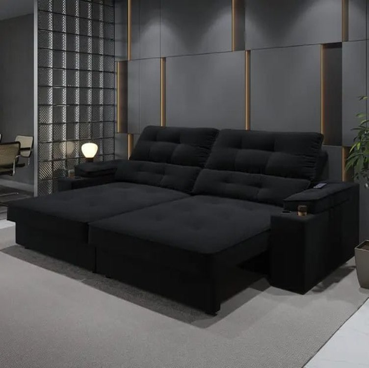 Sofá Santiago 2,30m (L) com Carregador USB e Porta Copos Retrátil e Reclinável – Cialar