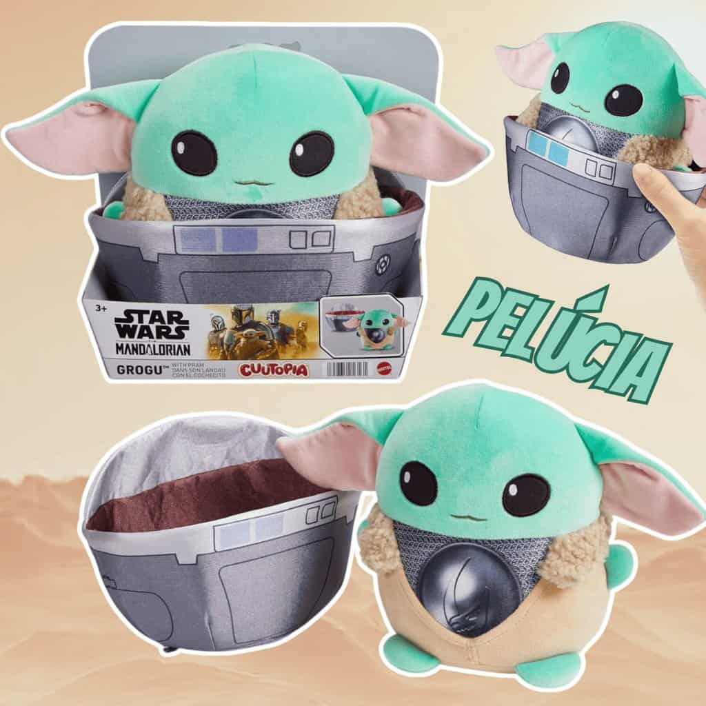 Star Wars, Pelúcia Grogu no Carrinho de Bebê, 17 cm de Altura, Inspirado na série Star Wars: The Mandalorian, Mattel