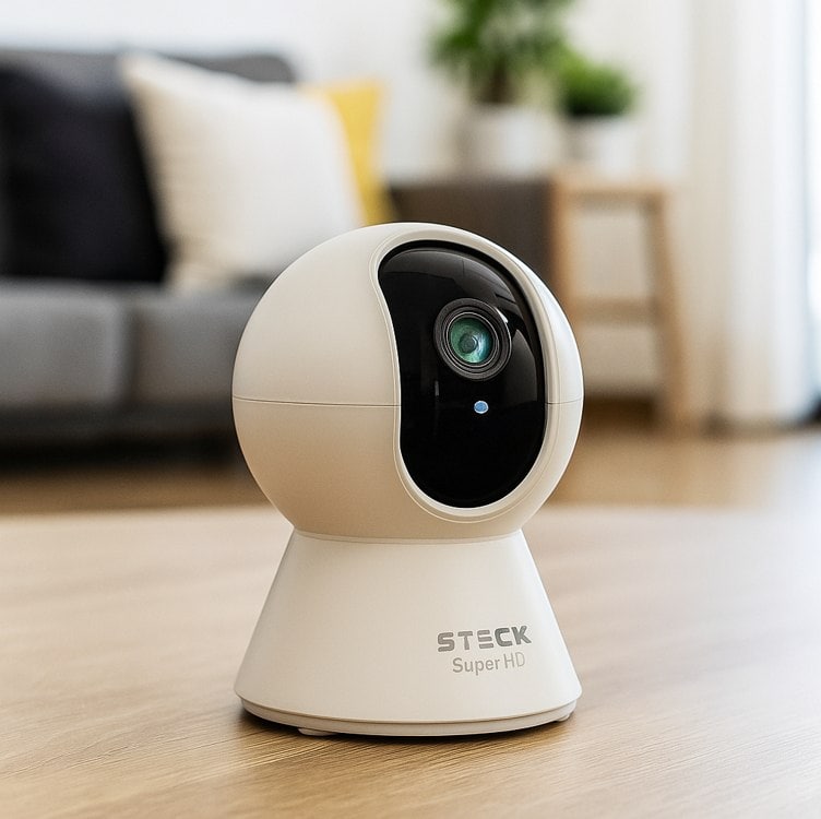 Steck, Câmera De Segurança Interna Ptz 360 Super HD (3MP), Wi-Fi, Áudio bi-direcional, Detecção de som e movimento, Visão noturna, Armazenamento Local 128gb, Compatível com Alexa – SMBC3BS1