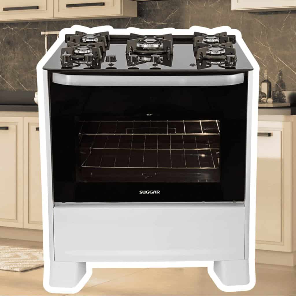 SUGGAR FOGÃO BEST GLASS BRANCO MESA DE VIDRO 5 BOCAS TRIPLA CHAMA ACENDIMENTO AUTOMÁTICO