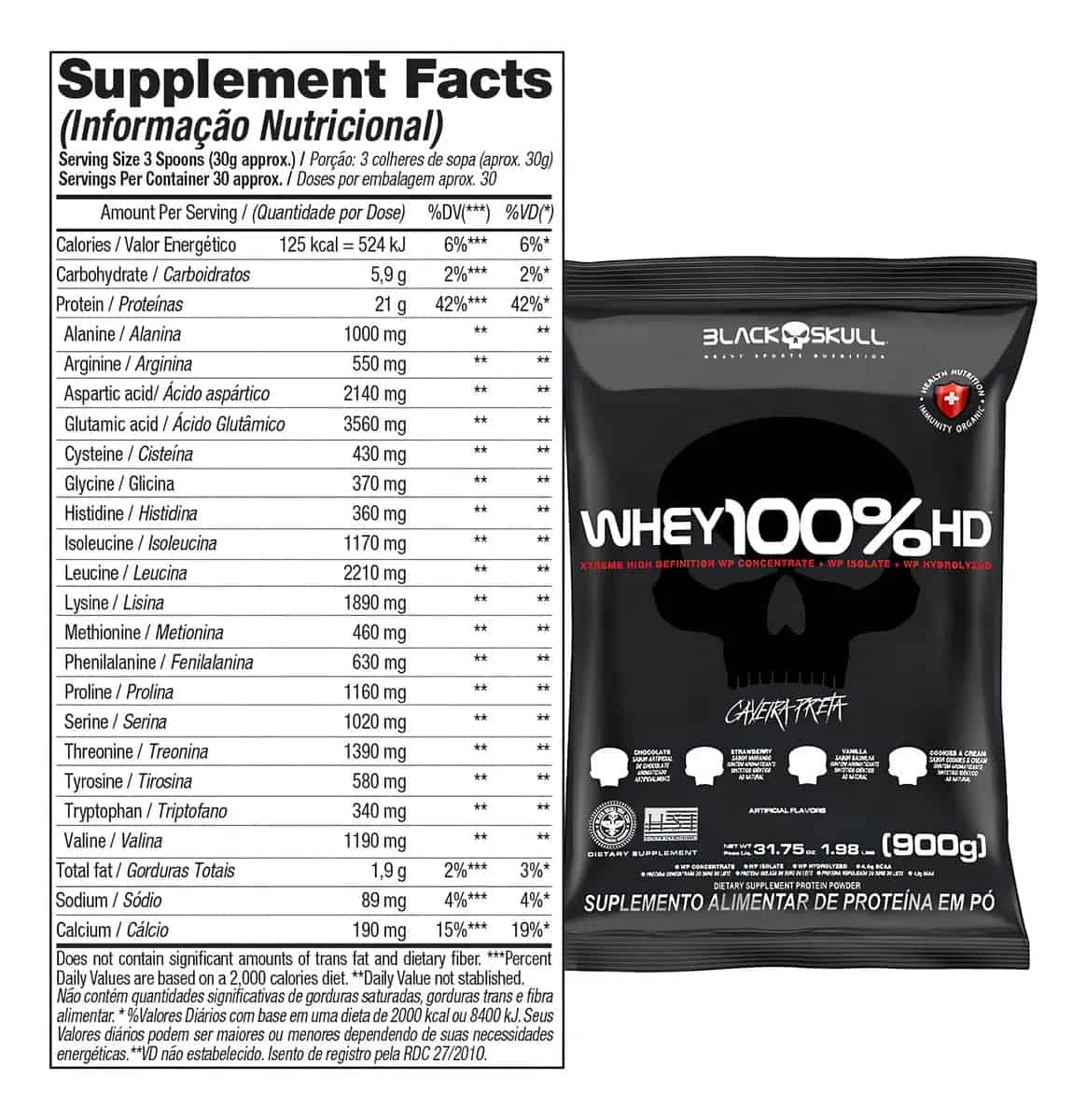 Suplemento em Pó 100% Hd Refil Black Skull – 900g Wpc Wpi E Wph Sabor Chocolate