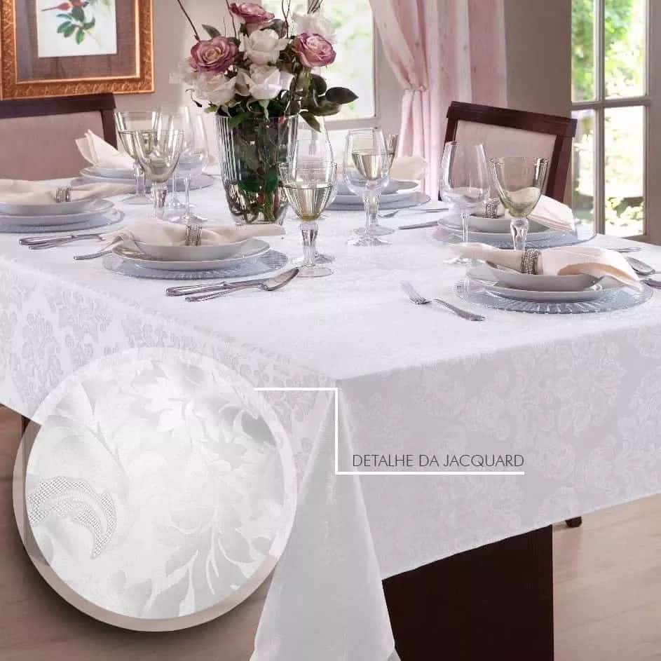 – Toalha De Mesa 6 Lugares Jacquard 200x135cm Admirare Cor Branca