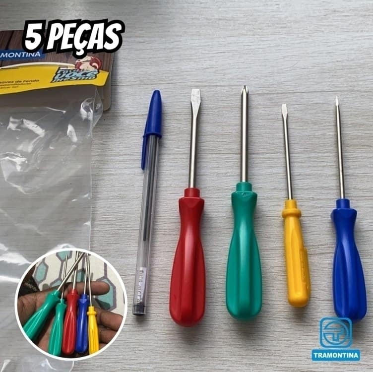 Tramontina 43408176, Jogo de Chaves de Fenda 5 Peças, Sendo 2 Ponta Chata 2 Ponta Cruzada 1 Clipe