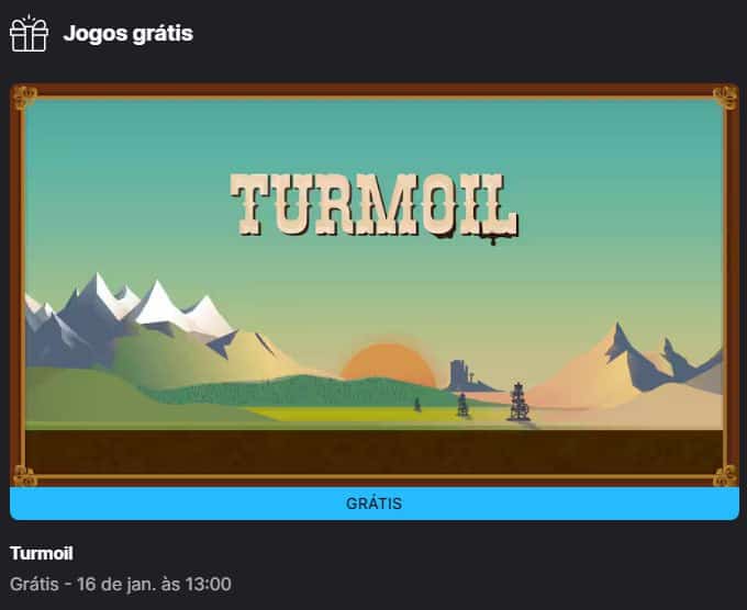 Home > Games e Console > Turmoil Turmoil Epic Games Equipe Promotop • 09/01/25 De graça! Parcelado IR À LOJA Compartilhar: Detalhes da Oferta 🔥 Jogo Grátis Epic Games! – Turmoil 🛒 Link: store.epicgames.com/pt-BR/p/turmoil-26318a