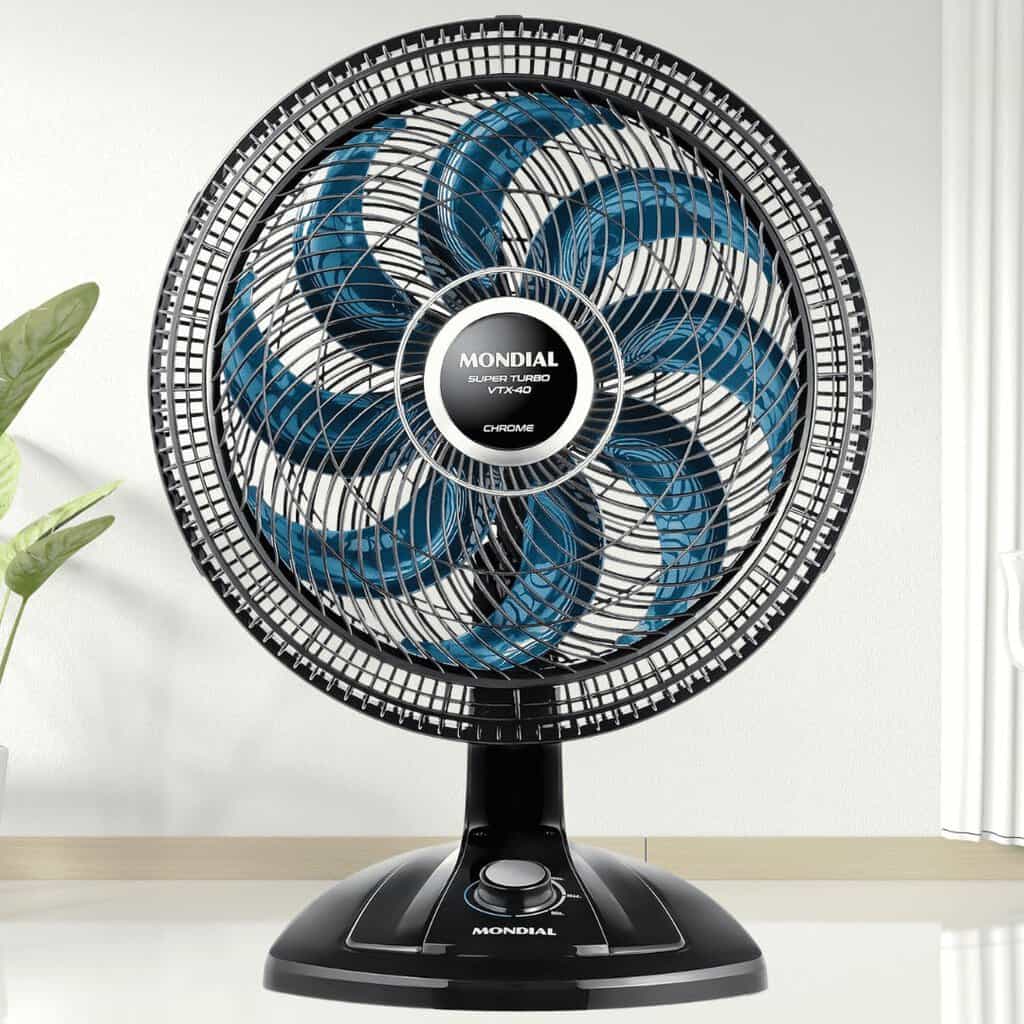 Ventilador de Mesa 40cm Super Turbo, Mondial, Preto/Azul, 140W, 110V – VTX-40-CHROME