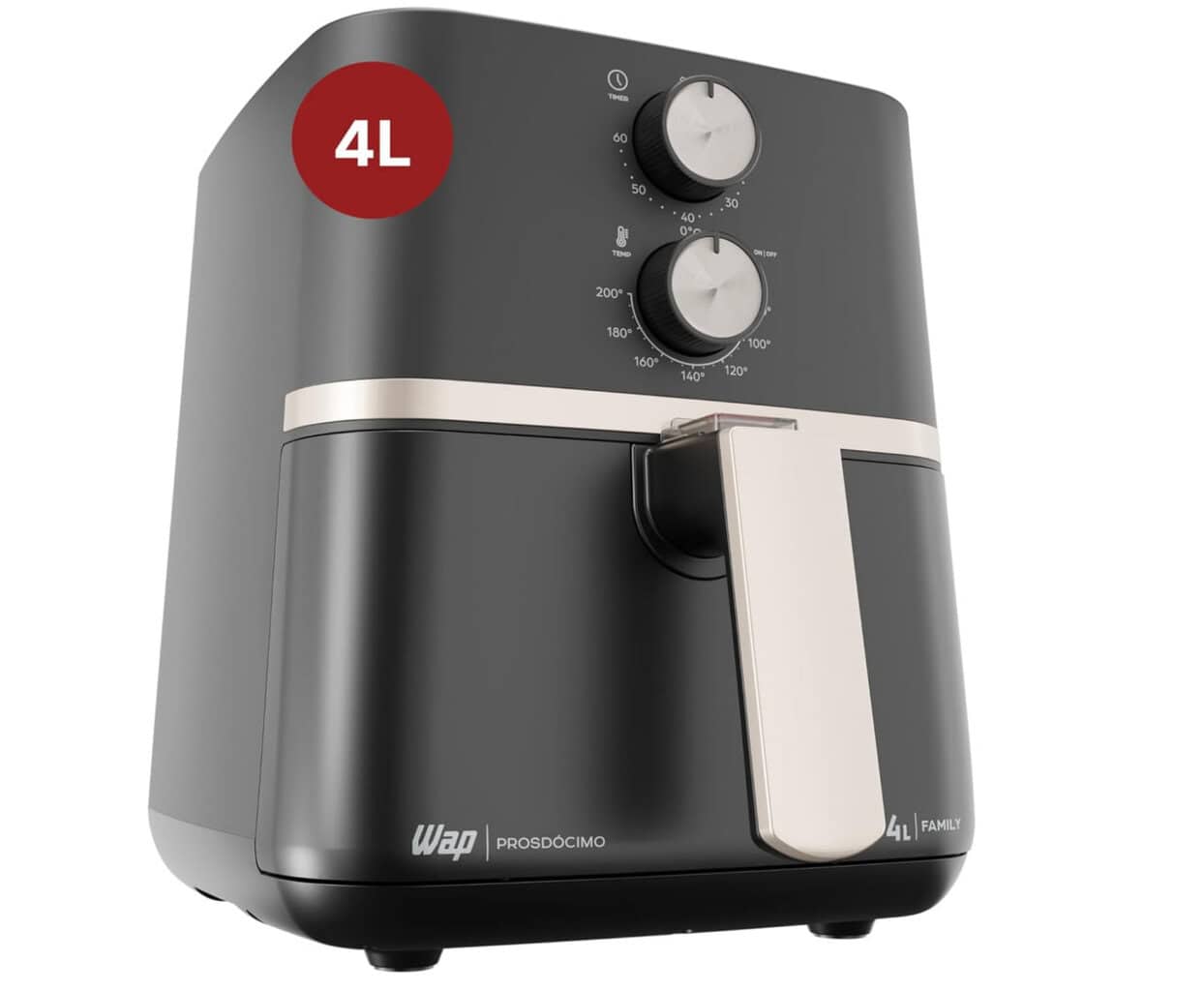 – WAP Fritadeira Elétrica Air Fryer FAMILY 4 Litros, Temperatura Ajustável, Duplo Revestimento Antiaderente, 1500W 127V