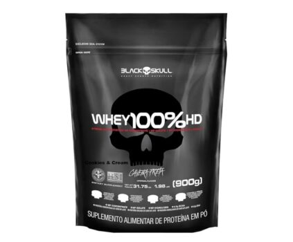 💪 Whey 100% Hd – 900G Refil Cookies e Cream, Black Skull