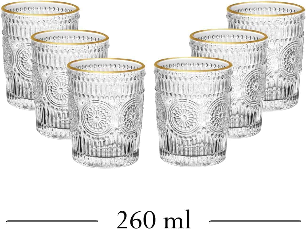 – WOLFF – Conjunto 6 Copos de Vidro com Fio de Ouro Mandala 260ml