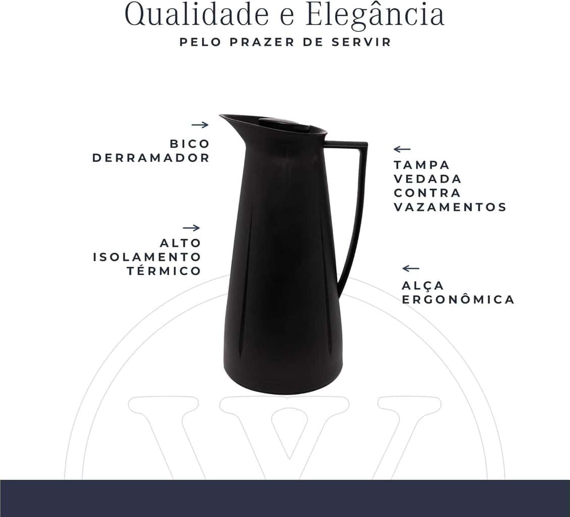 WOLFF Garrafa Térmica de Plástico Swan Preta 1L – Utensílios de Cozinha – Mesa Posta – Decoração -Perfeita Para Café e Chá-Mantém a Temperatura de Bebidas Quentes e Geladas